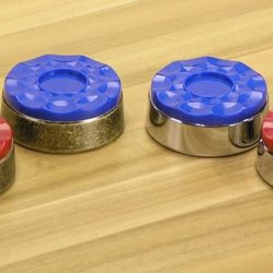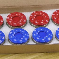 • Set of 8 shuffleboard pucks, 4 Red and 4 blue