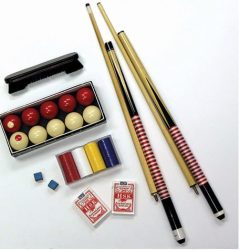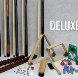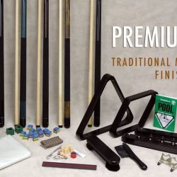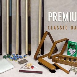 • Accommodates 10 cues, set of balls, ball rack, chalk, and table brush