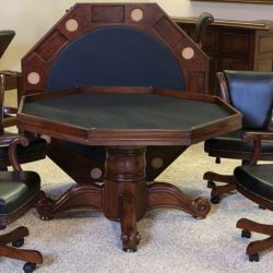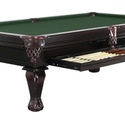 The Duchess traditional pool table is a beautiful solid wood table available in luxurious dark traditional mahogany, rich warm chestnut and back finishes. The distinctive Dutchess style is known by its graceful arched cabinets accented with dentil holding side rails and hand-carved ball & claw legs. As with all CL Bailey brand tables, the Dutchess carries a lifetime guarantee.