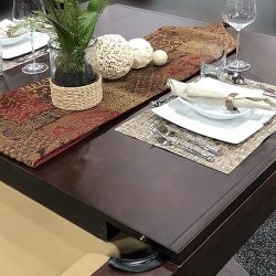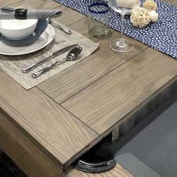 • The Brookdale’s rustic wood grain finish and angled legs with turnbuckle accents add to its classic look.