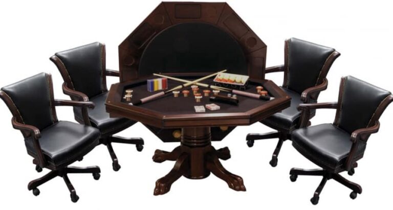 Level Best 54″ 3 in 1 Combination Game Table Set with 4 Rocker/Swivel Chairs