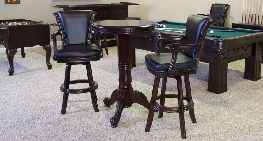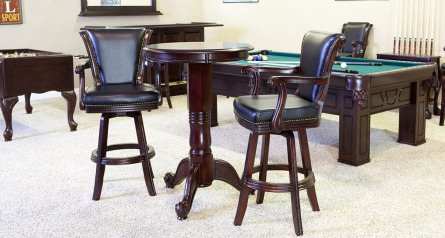 Sturdy solid wood construction, the Elayna’s graceful double-arch style cabinet supported by our classic Queen Anne legs will be a stunning focal point in the game room. The Elayna is available in luxurious, dark traditional mahogany, rich warm chestnut and black. As with all CL Bailey brand tables, the Elayna carries a lifetime guarantee.