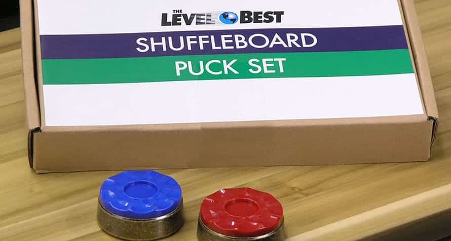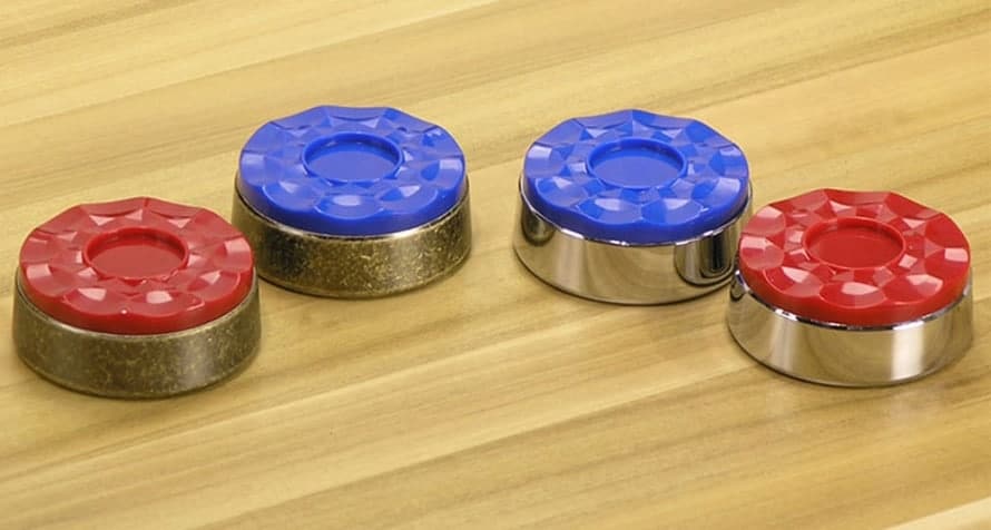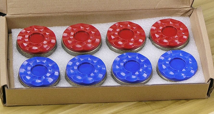 • Set of 8 shuffleboard pucks, 4 Red and 4 blue