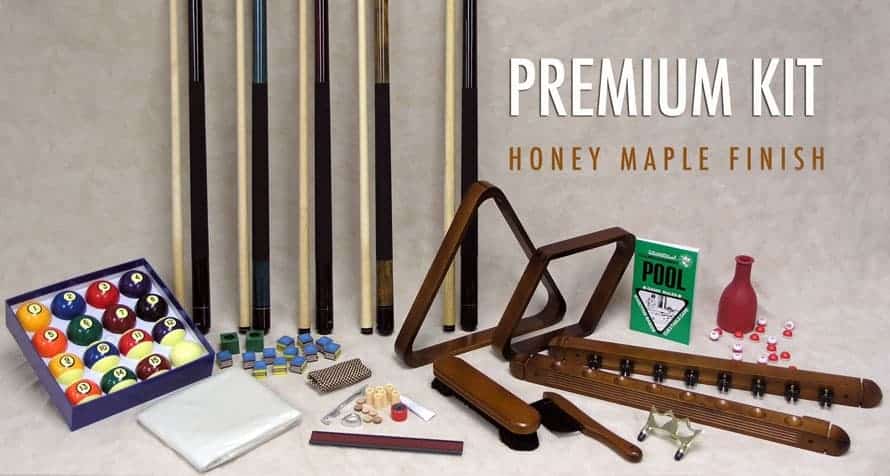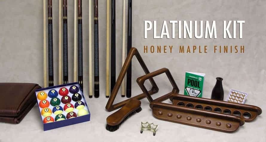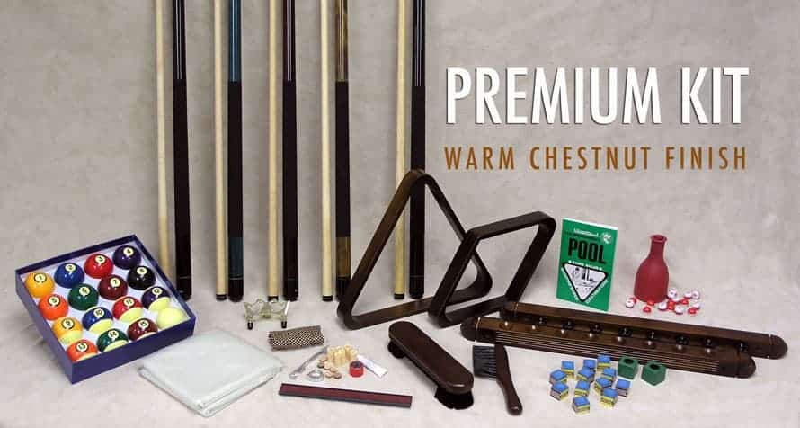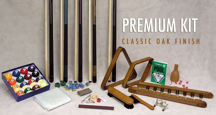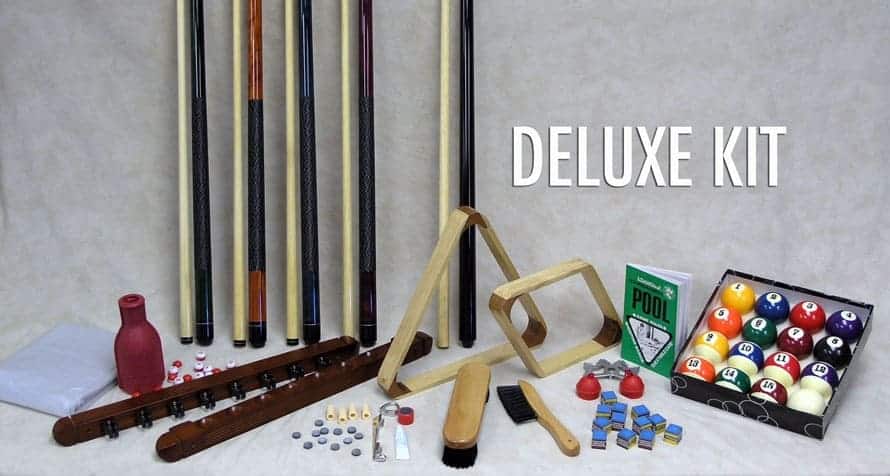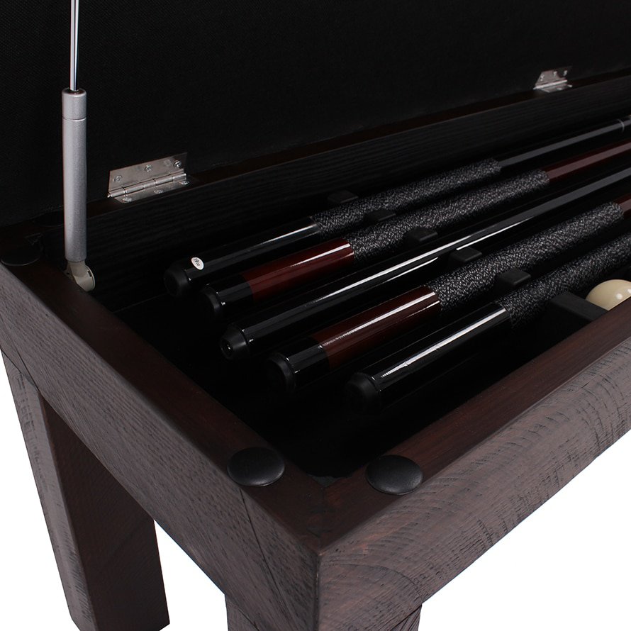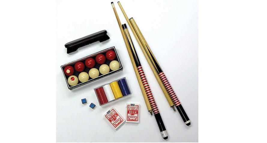 • Accommodates 10 cues, set of balls, ball rack, chalk, and table brush