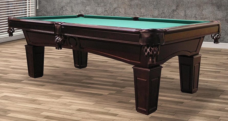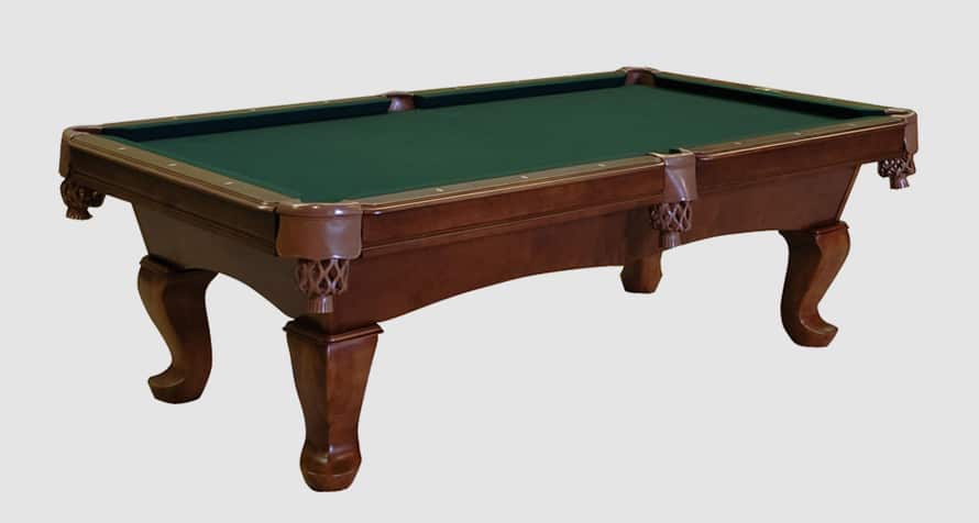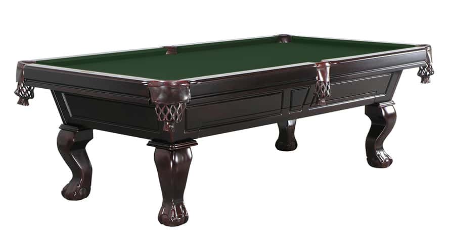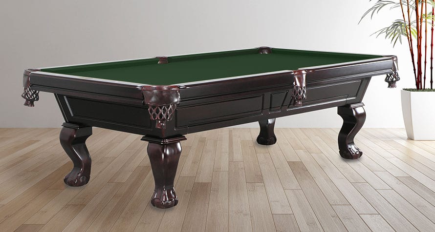 The Duchess traditional pool table is a beautiful solid wood table available in luxurious dark traditional mahogany, rich warm chestnut and back finishes. The distinctive Dutchess style is known by its graceful arched cabinets accented with dentil holding side rails and hand-carved ball & claw legs. As with all CL Bailey brand tables, the Dutchess carries a lifetime guarantee.