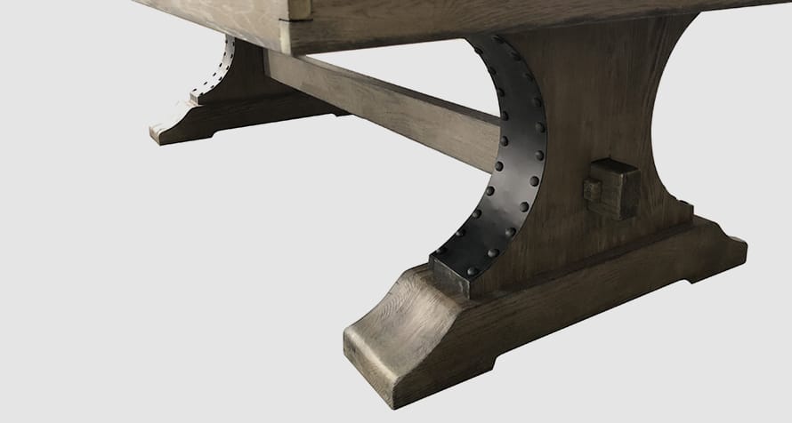 • The Brookdale’s rustic wood grain finish and angled legs with turnbuckle accents add to its classic look.