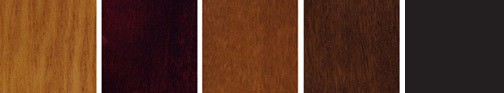 • Classic Oak, Traditional Mahogany, Honey Maple, Warm Chestnut, and Black