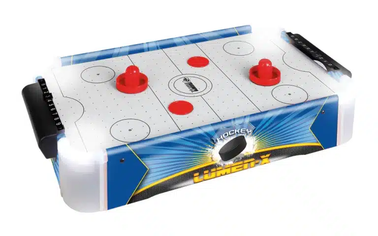 • Light-Up Action – LED-illuminated 20″ tabletop air hockey for an exciting game experience.