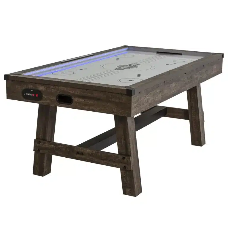 • UNIQUE TWIST, CLASSIC DESIGN – The rustic wood finish, paired with the unique K-shaped legs, gives the classic design a modern twist. Enjoy arcade-style air hockey on a table that looks great in any room in the house.